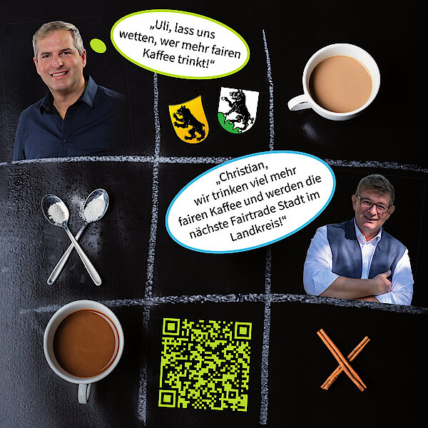 Ganz knapp hat Bürgermeister Ulrich Proske und mit ihm die ganze Stadt Ebersberg die faire Kaffeewette am 01.10.2024 gegen die Nachbarstadt Grafing gewonnen. 296 Tassen fair gehandelten Kaffees wurden an diesem Tag in Ebersberg getrunken. Ganze 5 Tassen mehr als in Grafing! Als fairer Wettverlierer schenkte der Grafinger Bürgermeister Christian Bauer am 06.10. an die Ausstellenden der Ehrenamtsmesse Kaffee aus. Natürlich tatkräftig unterstützt von seinem Ebersberger Kollegen. Vor allem aber war dieser Tag ein Gewinn für die Idee des fairen Handels! Denn das eigentliche Ziel der Wette war es natürlich, die Bürgerinnen und Bürger auf das Thema „Fairer Handel“ aufmerksam zu machen und mehr Bewusstsein für faire und auskömmliche Preise für die Produzierenden im globalen Süden zu erreichen. Denn diese erhalten vom Preis einer „normalen“ Tasse Kaffee nur etwa 2 Cent. Davon kann man auch in den Herkunftsländern unseres Kaffees kaum leben, geschweige denn, seine Kinder in die Schule schicken. Beim zertifizierten Fairtrade-Kaffee, zu erkennen am grün-blauen Fairtrade-Siegel, bekommen die Kaffeebauern einen garantierten Mindestpreis, bessere Umwelt- und Klimaschutzstandards werden umgesetzt, und Kinder können zur Schule gehen. Dies gilt in ähnlicher Weise für andere Produkte wie Tee, Kakao, Zucker aus Zuckerrohr etc.