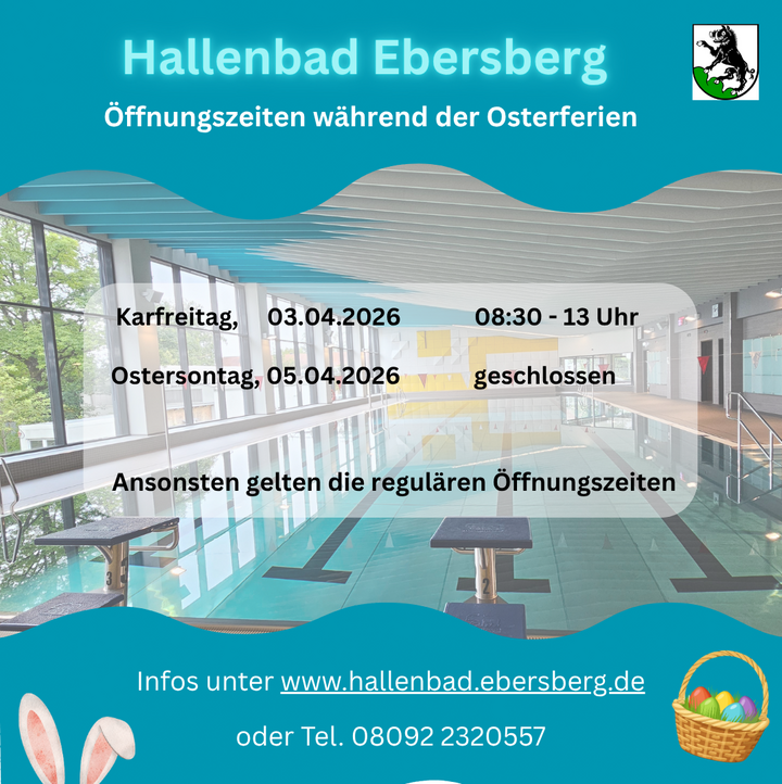 Das Hallenbad Ebersberg ist ein Schulschwimmbad mit öffentlichem Badebetrieb. Es wurde 1974 in Betrieb genommen. Das Hallenbad wurde von 2021 bis 2024 mit einem Aufwand von rund 12 Mio. Euro komplett saniert und umgebaut.